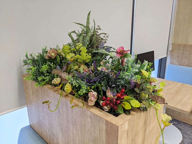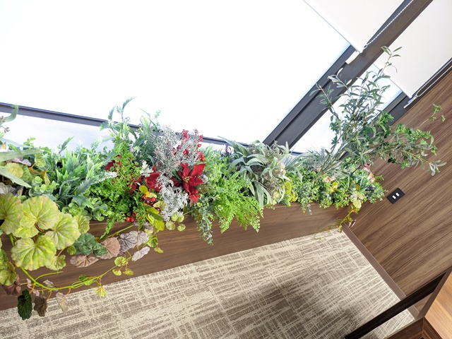 造花(フェイク)を使った室内装飾/関東地区オフィス緑化 模様替え 冬/東京都(植栽の構成、模様替え全般を、当社で担当させていただきました。) (株)エルトラストジャパン 植栽の構成、模様替え全般を、当社で担当させていただきました。