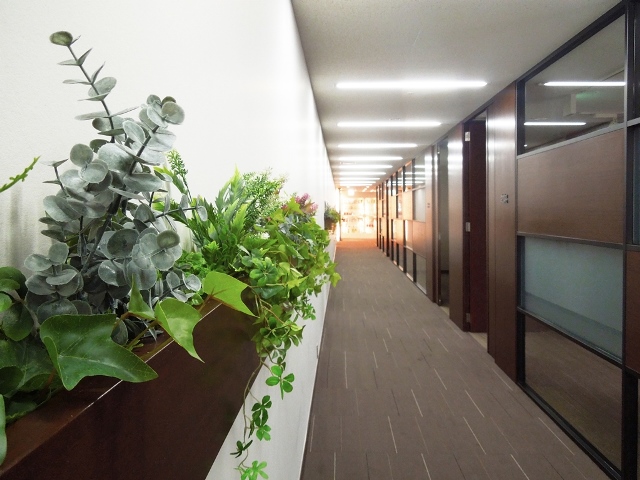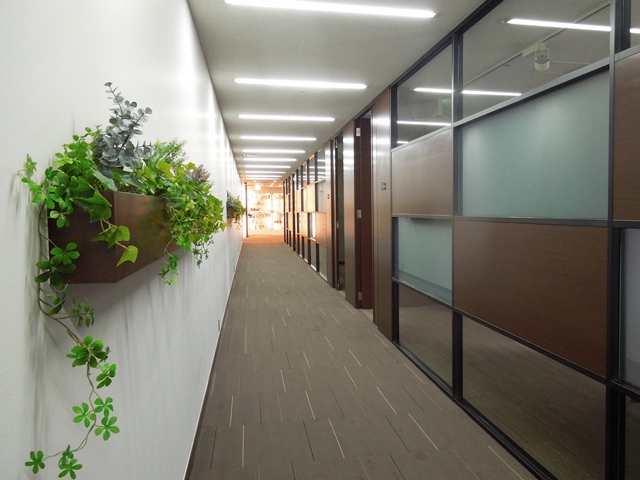 造花(フェイク)を使用した壁面緑化/関西地区オフィス内壁を増設し、埋込み型にて造花を装飾。/大阪(デザイン提案、設計、施工全般を、当社で担当させていただきました。) (株)エルトラストジャパン 施工前壁を増設(埋込み型に)