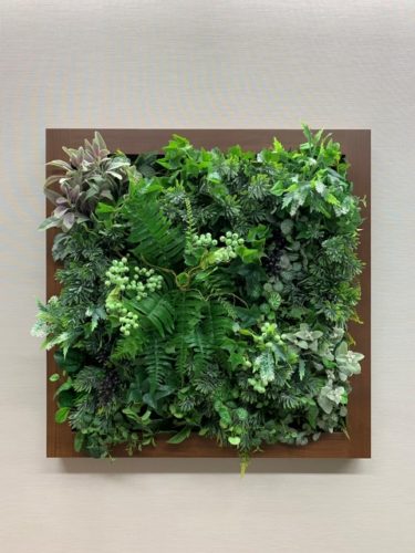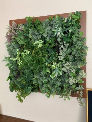 造花(フェイク)を使用した壁面緑化/関東地区「専用額縁(90cm×90cm角)」を設置し、造花を装飾。/東京(デザイン提案、設計、施工全般を、当社で担当させていただきました。) (株)エルトラストジャパン