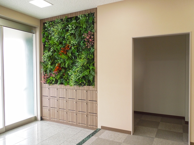 前のページへ額縁 壁面緑化造花(フェイク)を使用した壁面緑化/関東地区